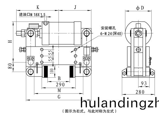 额定夹紧力为:50KN,轮宽160,左式配置,其订货标记为YLBZ25-160-左;右式配置为YLBZ25-160-右。