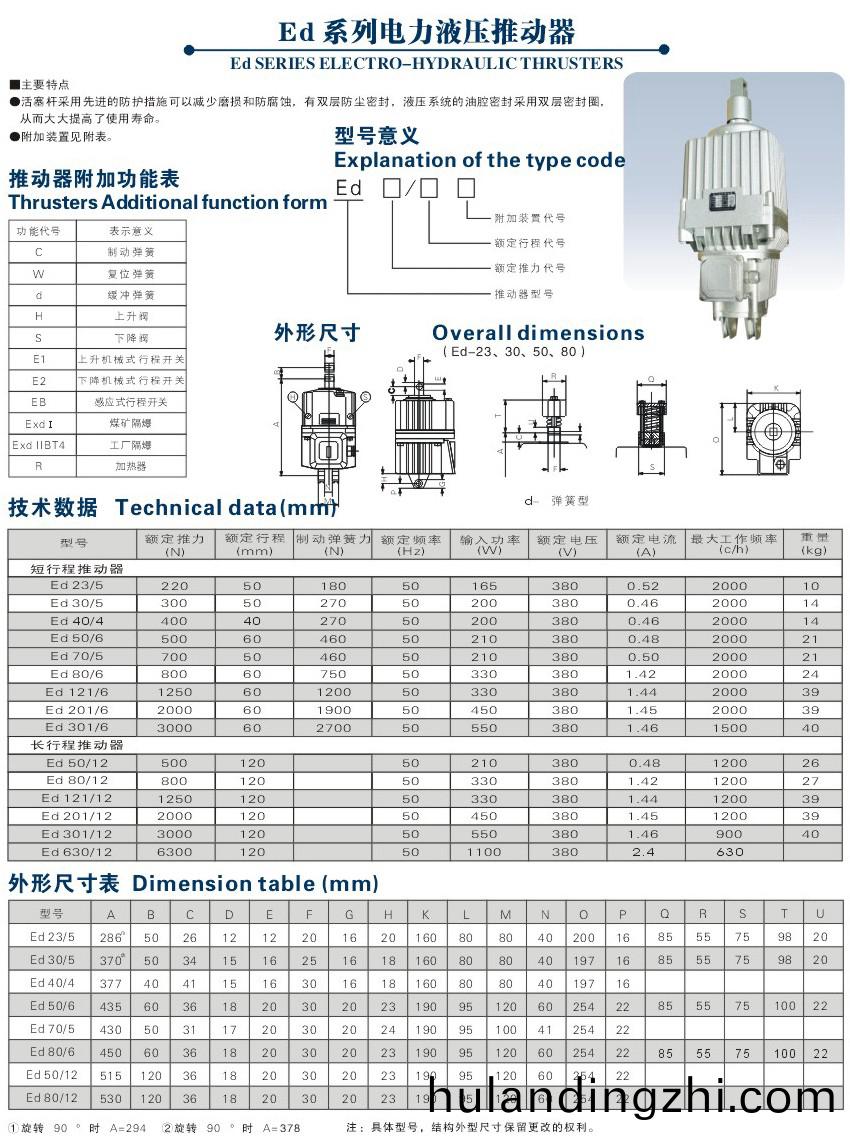 ED系列电力液压推动器,适用于YWZ4,YWZ5,YWZ9等电力液压制动器的工作驱动。