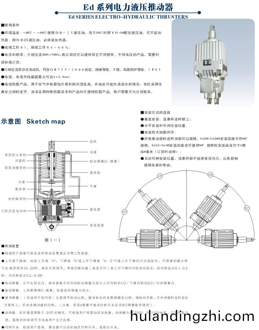 ED系列电力液压推动器,适用于YWZ4,YWZ5,YWZ9等电力液压制动器的工作驱动。